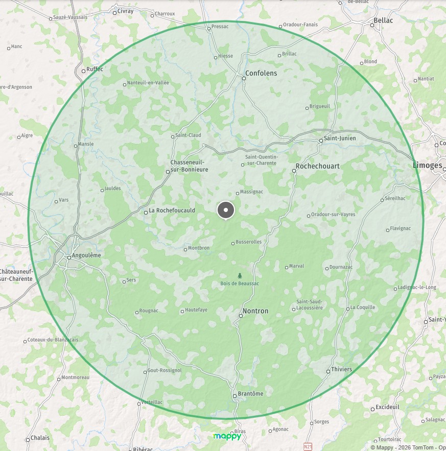 Avec un rayon de déplacement de 45km de notre base à Roussines, nous intervenons en Charente, Dordogne et Haute-Vienne,
